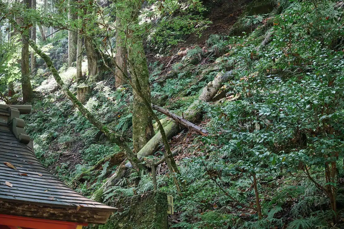 本殿のすぐ裏手の山にも倒木の様子は見られる
