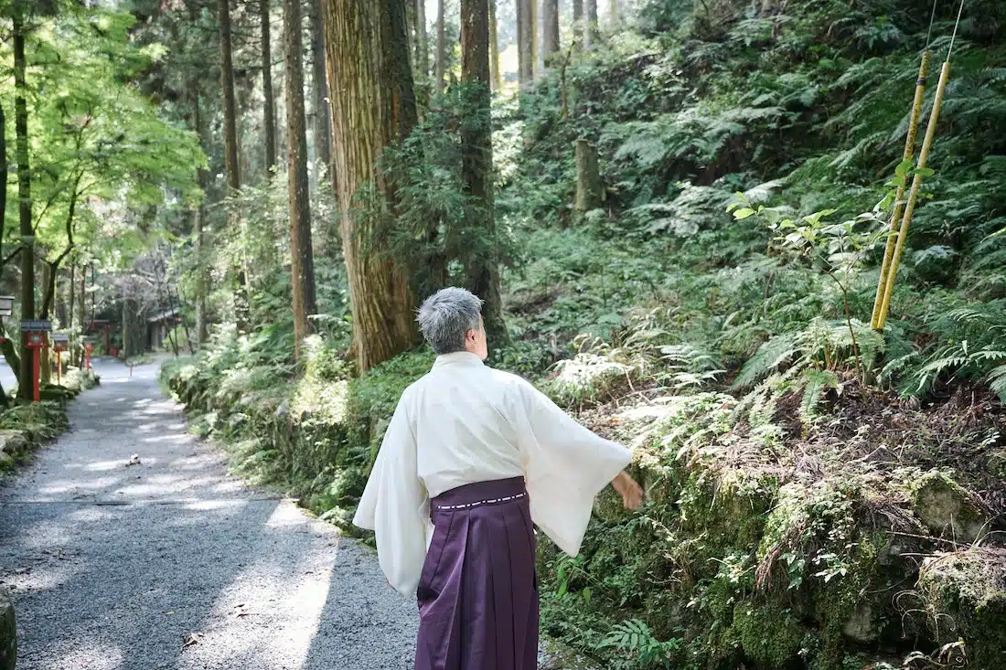 大阪の建築設計事務所にて7年間勤務。時代の経済の波により、建物が壊されていく様子を見て、「この先の時代に残して「この先の時代に残していける建築を守りたい」という思いが芽生える。父が神職であったことをきっかけに、建築の延長線上に“神社という建築と祈りの場を守る”という仕事を見出し、神道の道へ。國學院大学で神職資格を取得後、各地の神社での奉職を経て、父の跡を継ぐかたちで貴船神社の宮司に就く。