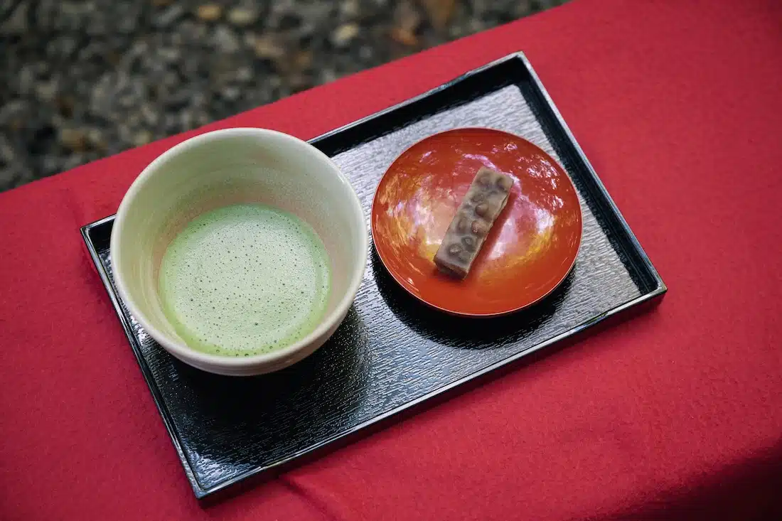 インタビューの最後、高井宮司が「貴船神社のご神水でお茶を点ててくださる方がいるので、どうですか?」と声をかけてくださった。驚くほどまろやかで、やわらかい味わいのお抹茶が、喉を潤す。「子どもたちには本物のお茶を飲んでほしい」と言ってお茶を振る舞っている方の姿を見て、境内では、水に運ばれて、お茶の文化が伝えられていることを感じた。