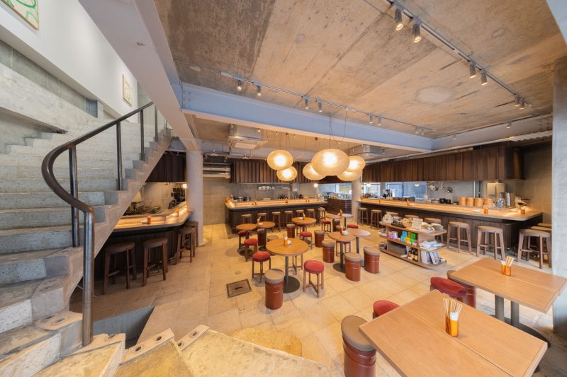 同施設1階には東京事務所に併設している“社員+社会の食堂”のコンセプトが話題のオカン料理「社食堂」もオープン。移転前のオフィスには社員食堂はなかったとのことで、スタッフも大喜びだそうです。ほか、とんかつとナチュラルワインで新たなスタイルを提供する「つかんと」や、昼飲みもできるスパイス料理と炭火焼きの店「sibire」、また、吉田愛さんがプロデュースする、旅で出会ったインスピレーションをもとにコーヒーやワインにも合うクラフトアイスクリーム「yacone」も初登場。地域とのつながりも重視したラインアップが揃います。