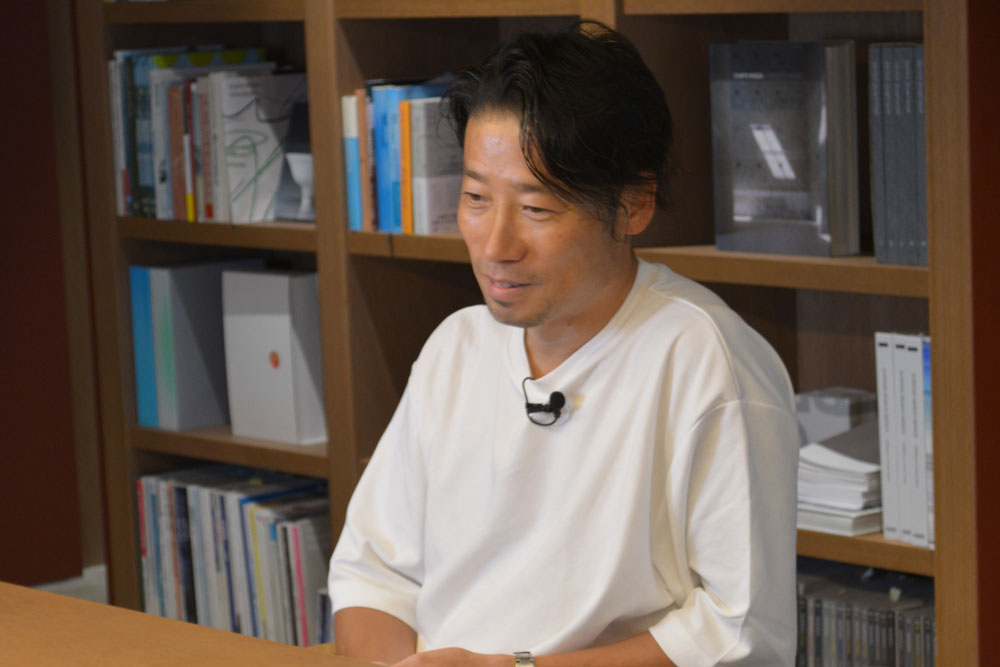 「このデザインは、懐かしくもありモダンでもある、両方が混ざったようなデザインにしたいなっていうことを考えながら、わざと凹凸のある、陰影が作られるように提案させてもらったんですけど、めちゃめちゃいいんですよ。自画自賛みたいですけど、他に選択肢がない感じで使っています。