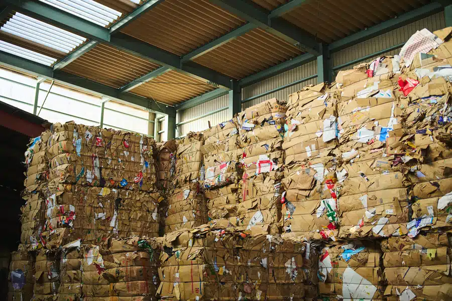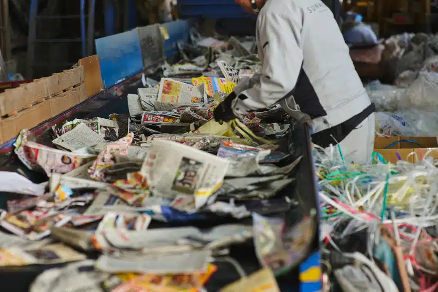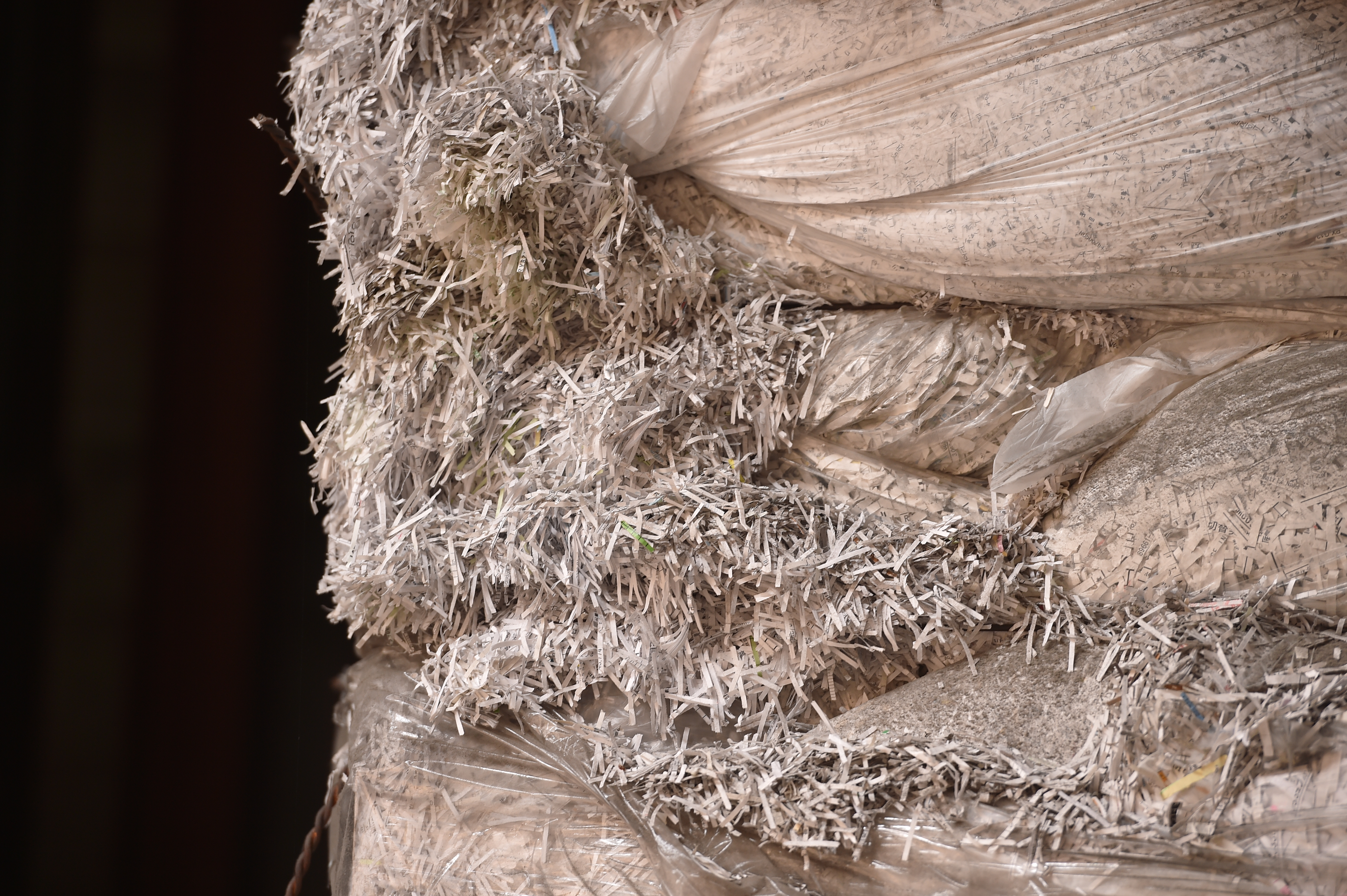 回収された古紙は、紙の種類ごとに分別される。紙の種類によって“次に生まれ変わる紙”が異なるからだ。分別された古紙はプレス加工され、1トンほどの大きな塊に圧縮されて製紙会社へ渡る。日本で流通する紙の約6〜7割は古紙を原料としており、紙は“リサイクルの優等生”だと原さんは言う。