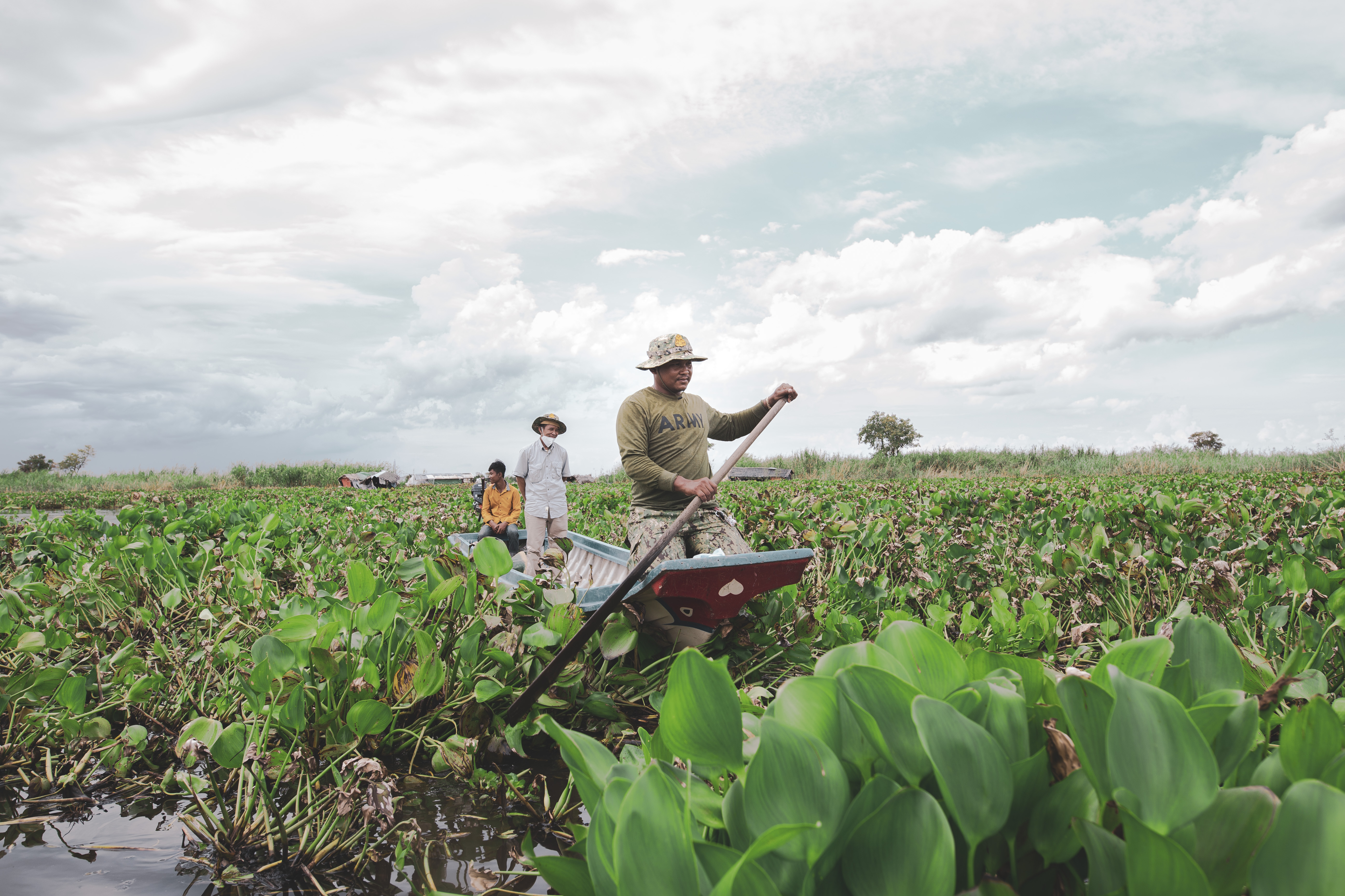カンボジアは国土の約30%を湿地帯が占める。ホテイアオイは種子だけでなく株分けでも増殖し、7ヶ月で200万倍にも増えると言われるほど、驚異的な繁殖能力を持つ。その成長を支えるエネルギーは、ひとつは太陽光。そして、もうひとつは、水中に溶け込んだ窒素や炭素だ。