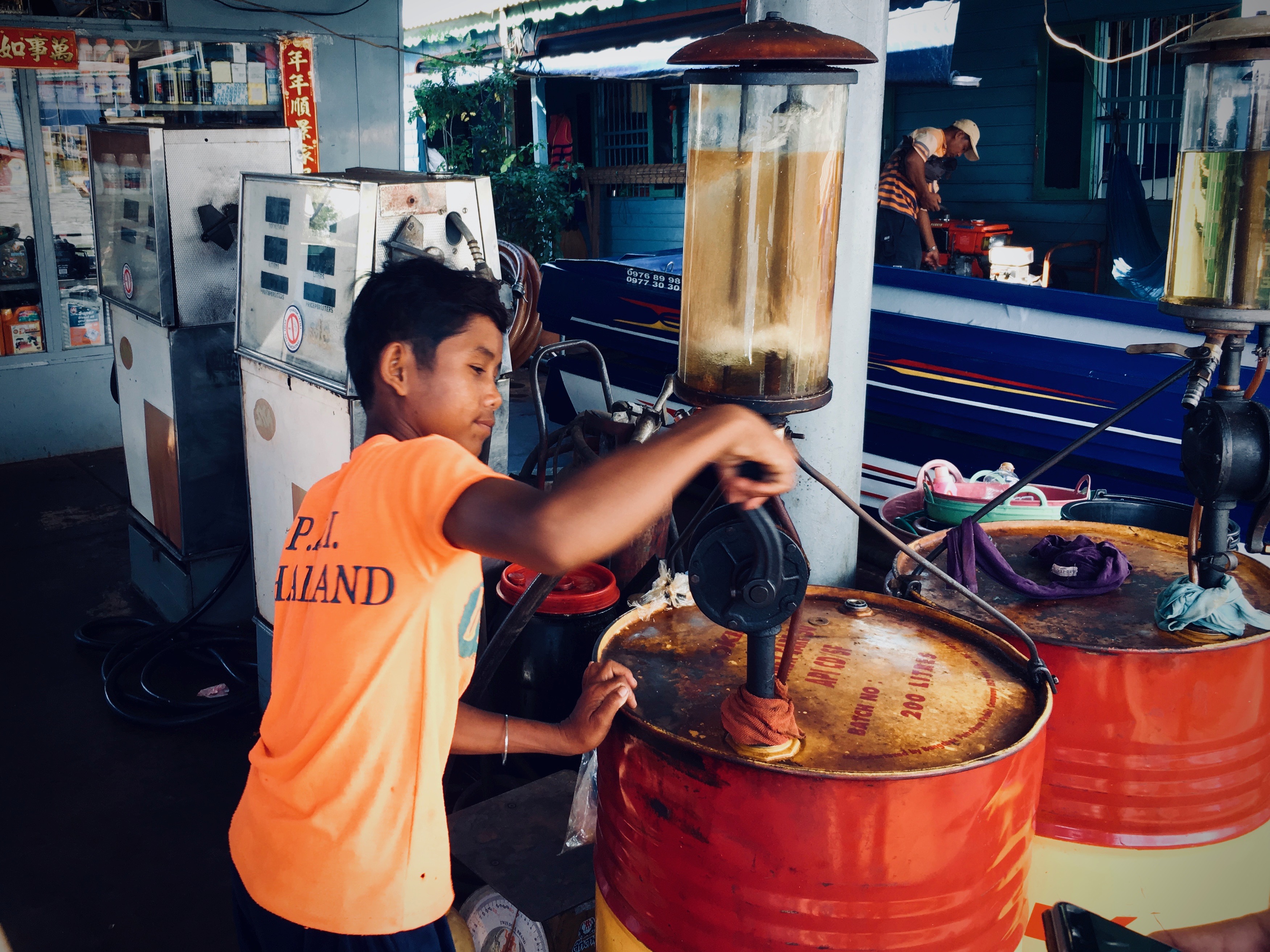 トンレサップ湖上に浮かぶガソリンスタンドで働く少年。村民が移動に使うスピードボートは、主にガソリンを燃料としている環境課題に向きあいながら、“無価値とされるもの”にどう高付加価値を与え、社会へつないでいくのか。原さんの挑戦は、後編へと続く。